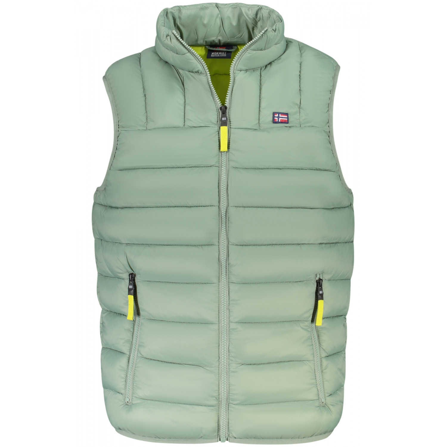 SLEEVELESS, 2 EXTERNAL POCKETS, 2 INTERNAL POCKETS, CONTRASTING DETAILS IN YELLOW, ZIP, APPLICATION, LOGO