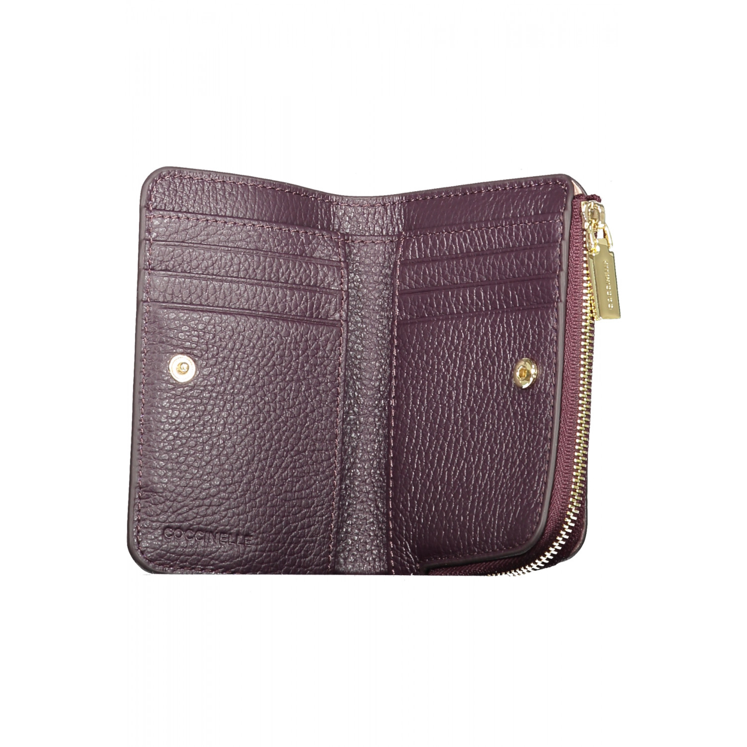 METALLIC SOFT WALLET, 3 COMPARTMENTS, COIN PURSE, DOUBLE CARD SPACES, ZIP AND SNAP CLOSURE, LOGO