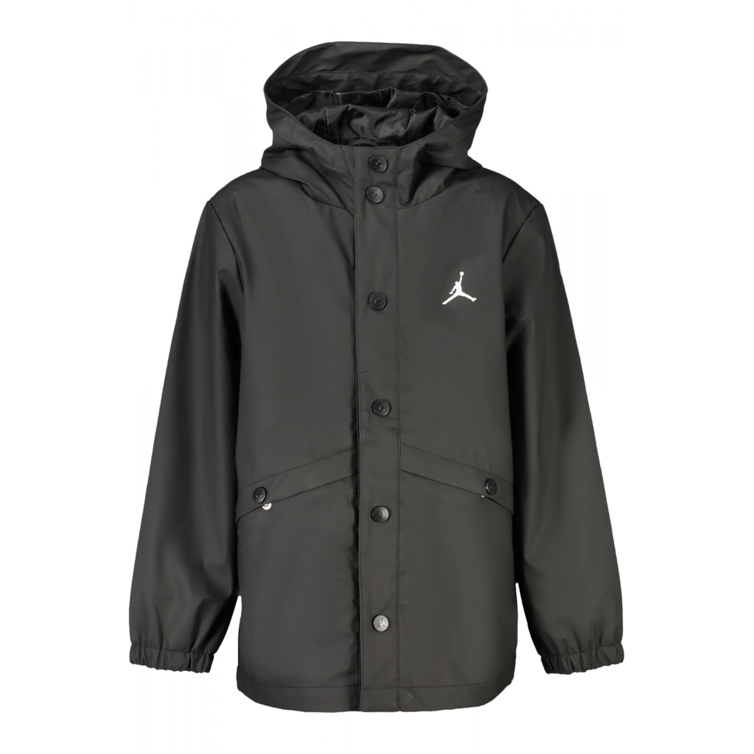 LONG-SLEEVED JACKET WITH HOOD, 2 EXTERNAL POCKETS, BUTTONS, PRINT, LOGO