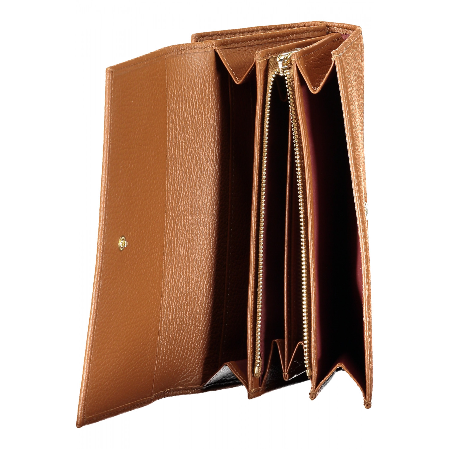 METALLIC SOFT WALLET, DOUBLE OPENING, 1 PART WITH 3 COMPARTMENTS, COIN PURSE, ZIP AND SNAP CLOSURE, THE OTHER PART DOUBLE SPACES FOR CARD, SNAP CLOSURE, LOGO
