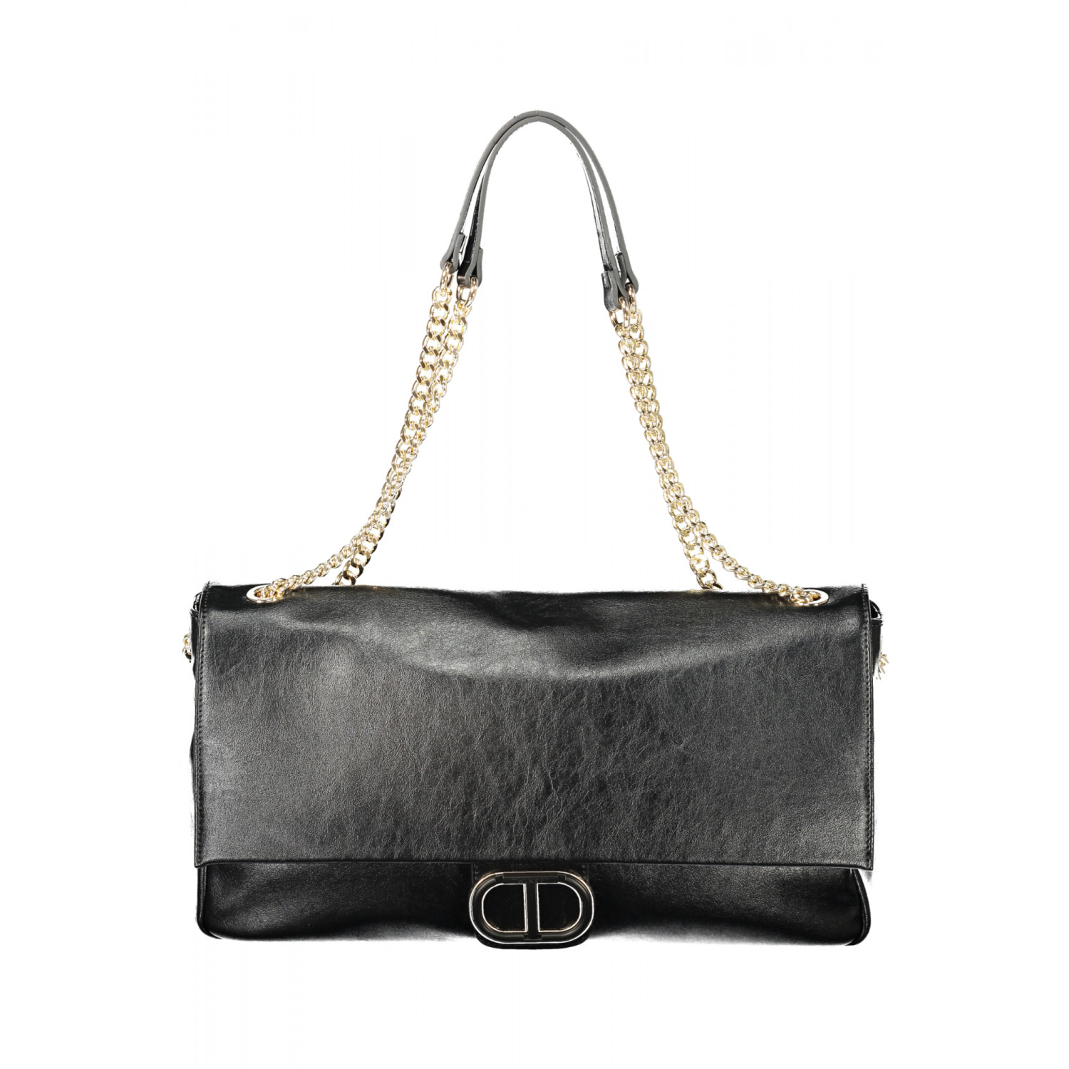 SHOULDER BAG, 2 CHAIN HANDLES, 1 INTERNAL CARD POCKET, SNAP CLOSURE, LOGO