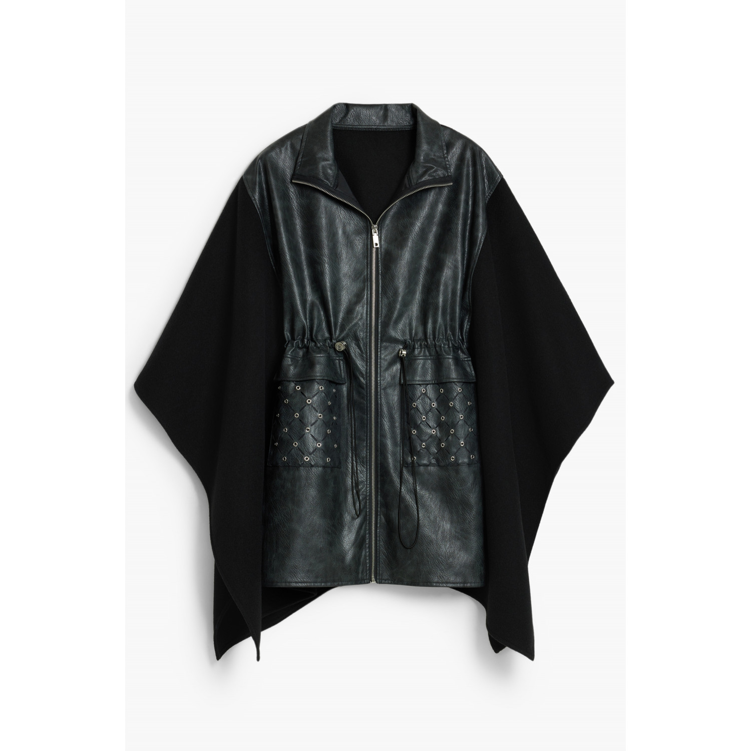 PONCHO, ALDAMA EYELETS, CONTRASTING DETAILS, 2 BIG POCKETS, ZIP AND DRAWSTRING, LOGO