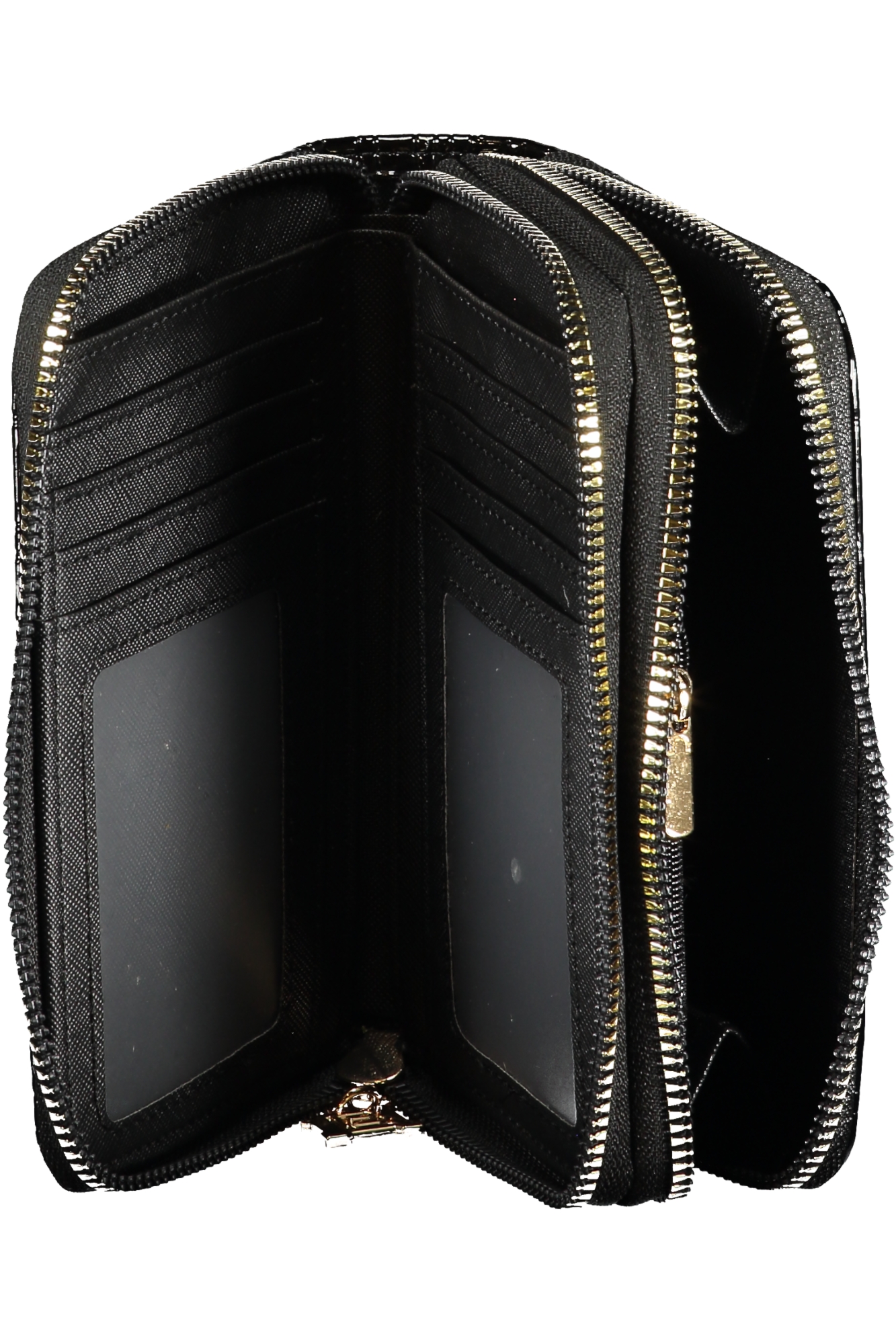 DOUBLE ARCADE WALLET, 3 COMPARTMENTS, COIN PURSE, DOUBLE CARD SPACES, CONTRASTING DETAILS, ZIP CLOSURE, LOGO