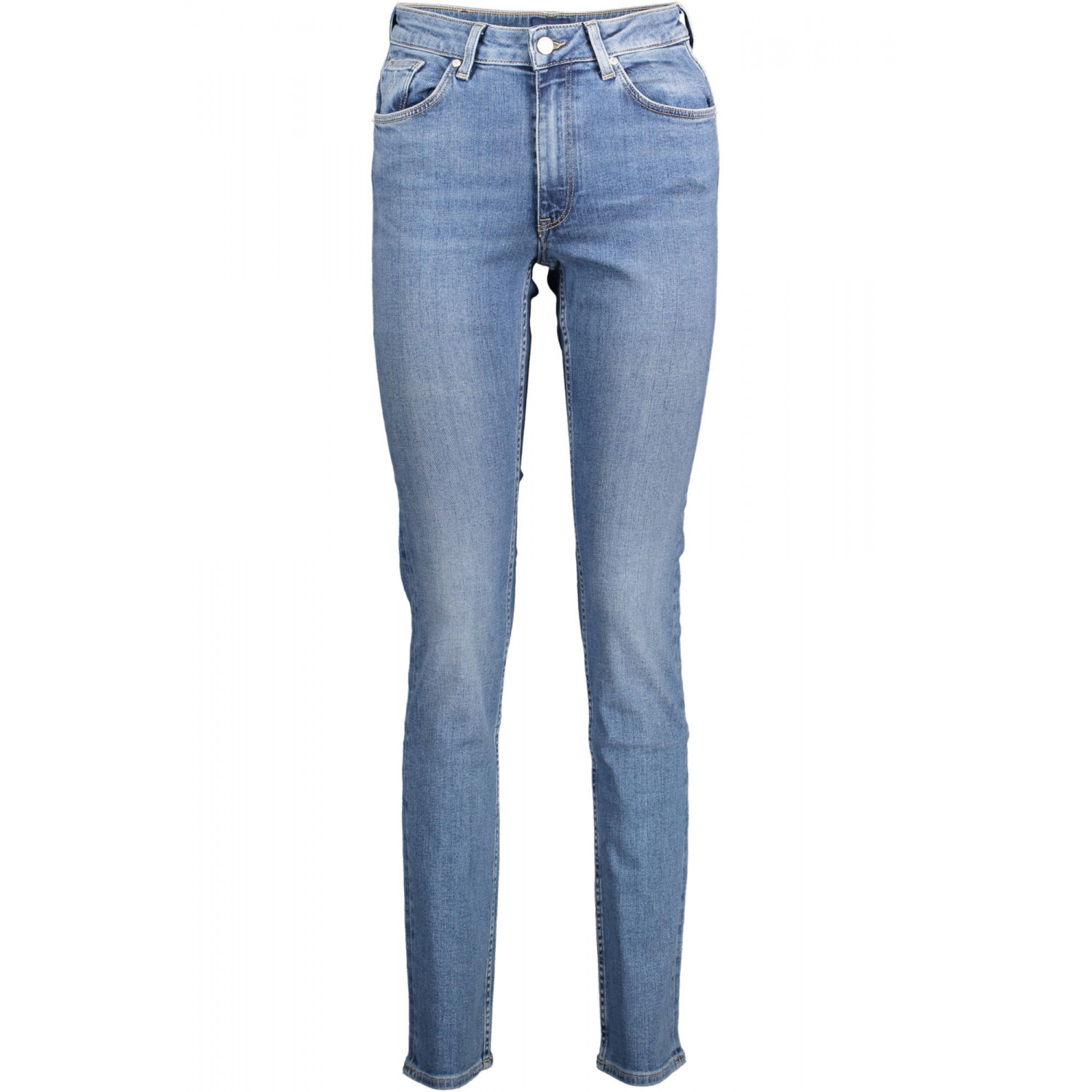 SLIM 5 POCKET JEANS, BUTTON AND ZIP, WASHED EFFECT, LOGO